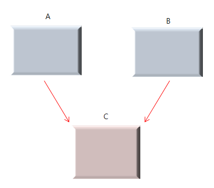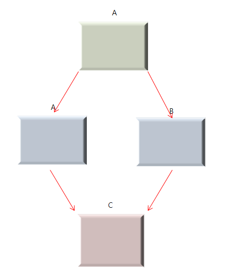 다중 상속은 말 그대로 여러 부모 클래스들로부터 상속 받는것을 말하는데 아래는 다중 상속 중 대표적으로 나오는 다이아몬드 상속이지만, 다이아몬드 상속은 문제가 굉장히 많아서 Diamond of Death 라고도 부릅니다.