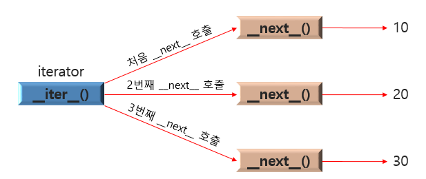 # __next__() 메서드를 사용하여 요소를 하나씩 불러옴