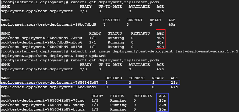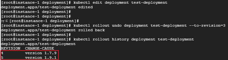 저는 kubectl set image deployment/test-deployment test-deployment=nginx:1.9.1 을 사용하여 기존에 있던 nginx 1.7.9 버전을 ngixn 1.9.1 버전으로 업데이트 하였습니다.
