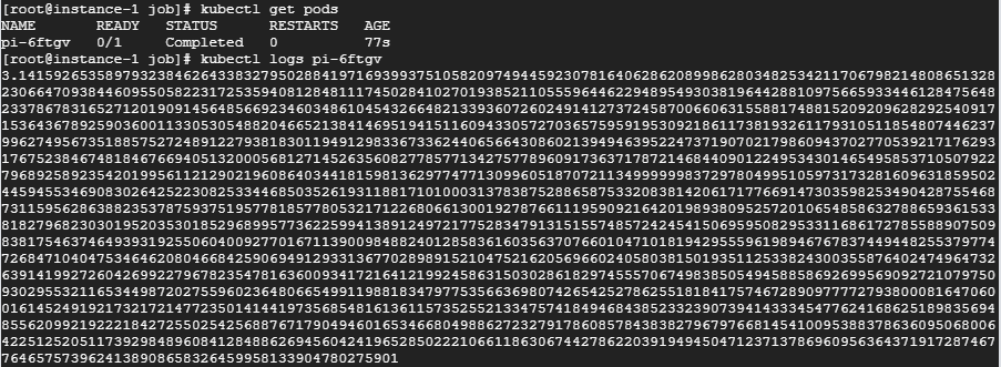 kubectl logs [파드명] pi1 과 같이 입력하면 각각의 컨테이너 출력값을 확인할 수 있습니다.