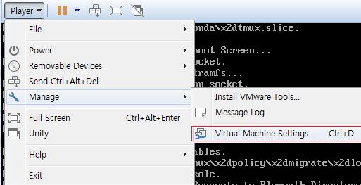 위의 이미지처럼 Virtual Machine Settings 를 선택해 줍니다.