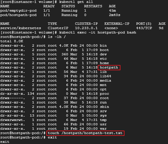 다시 마스터노드로 돌아와서 hostpath-pod를 삭제 후 hostpath-pod가 생성 되었던 노드로 이동하여 확인해보면 Pod가 삭제되도 데이터가 그대로 유지되는것을 확인할 수 있습니다.