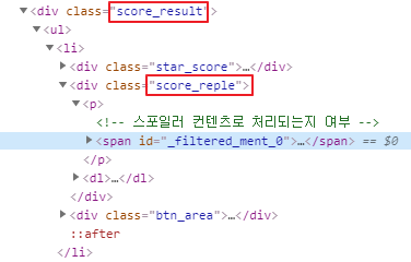 크롬이라면 F12를 눌러서 개발자창을 열으신 후 아래 이미지와 같이 우측 상단의 마우스 모양 클릭 → 댓글 클릭하여 해당 댓글부분의 HTML에서 class를 확인 합니다.