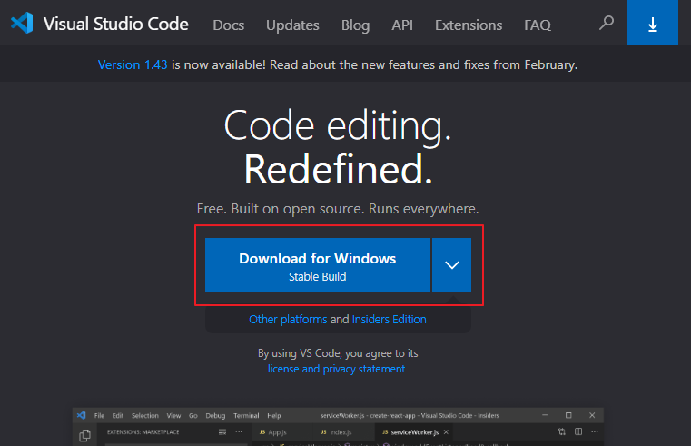 Visual Studio Code는 마이크로소프트에서 제공하는 오픈소스 에디터 입니다. 설치 자체에 어려운것이 없기 때문에, 아래 홈페이지에서 다운로드 후 다음만 쭉 눌러주시면 끝납니다.