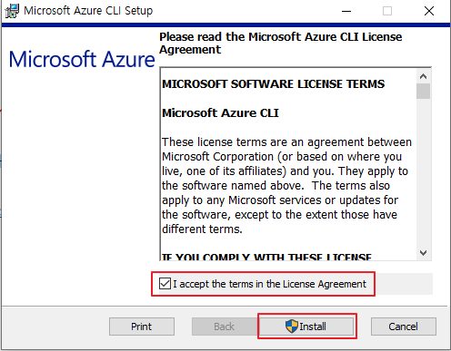 Azure CLI는 명령을 사용하여 Azure 서비스를 관리할 수 있는 기능을 제공 합니다. 설치 후 cmd, powershell에서 az 명령으로 Azure CLI를 실행할 수 있으며, 설치가 굉장히 간단하기에 홈페이지에서 MSI 인스톨러 다운로드 후 설치 진행 하시면 됩니다.