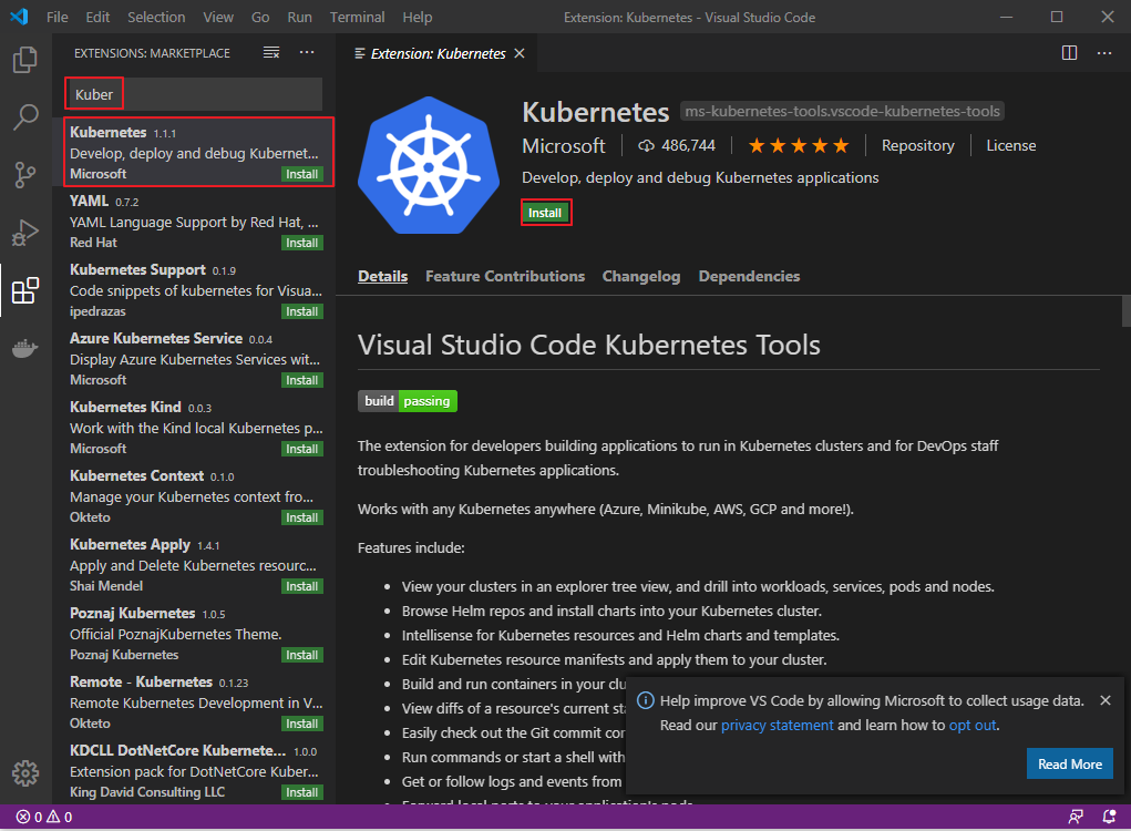 [Windows 10] Visual Studio Code Kubernetes Tools 설치 본문
