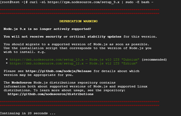 curl -sL https://rpm.nodesource.com/setup_12.x | sudo -E bash -