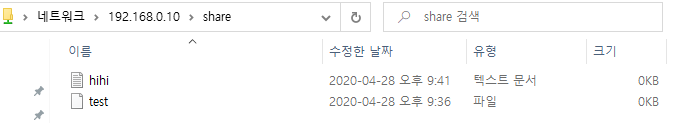 마지막으로 smb 서비스를 재시작하고 정상적으로 공유가 되는지 확인을 해주면 끝납니다.