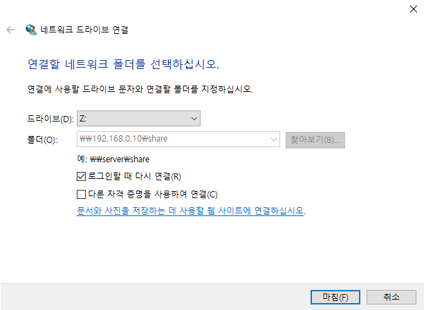 참고로, 아래와 같이 네트워크 드라이브를 연결해두고 사용할수도 있습니다.