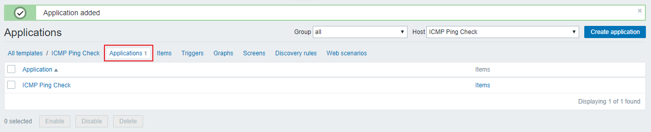 우측 상단의 Crate application을 클릭하여 아래 이미지와 같이 ICMP Ping Check를 하나 생성 하였습니다.