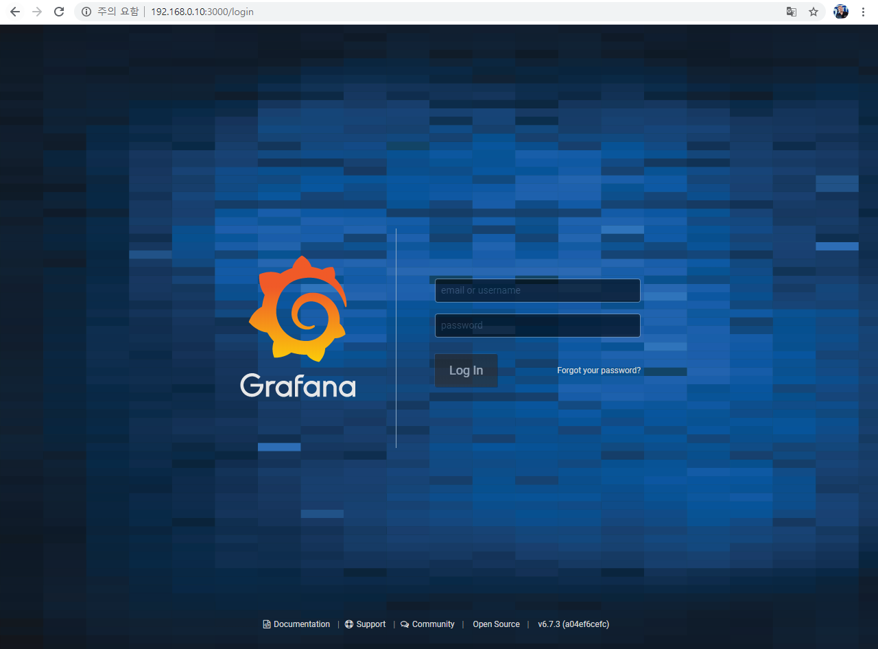 설치가 완료 되었다면 서버IP:3000 으로 그라파나 웹페이지에 진입할 수 있습니다.