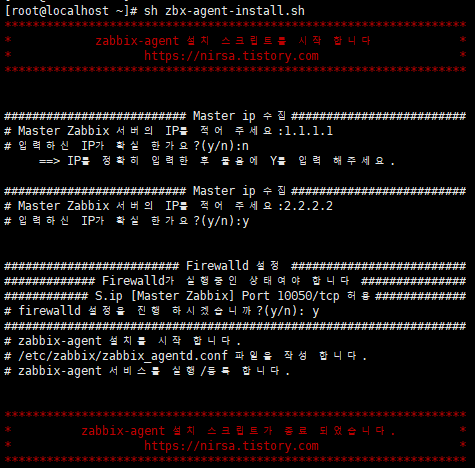 echo -e "* zabbix-agent 설치 스크립트가 종료 되었습니다. *"