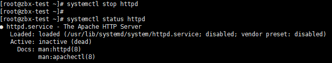 잘 적용 되었는지 확인하기 위해 아래와 같이 httpd를 종료 시켰습니다.