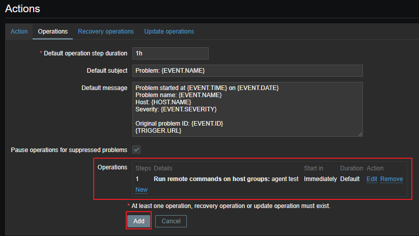 Operations 부분이 아래와 같이 추가 되었다면 Add를 눌러서 저장 해주세요.