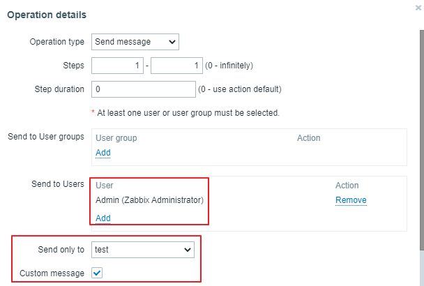 Send to Users에 Admin을 추가 해주세요. 별도로 유저를 생성했다면 그 계정 또는 바로 위의 호스트 그룹에서 선택해도 됩니다.