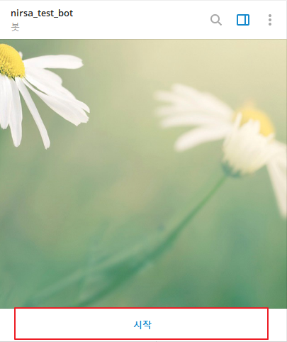 이제 생성했던 채팅 봇의 사용자명을 검색하면 나오게 되는데, 클릭하여 시작 버튼까지 눌러 주세요.