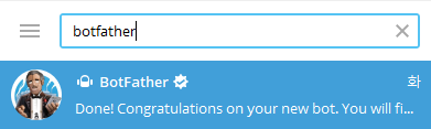 * fatherbot에게 받았던 코드를 입력하는 앞단에 "bot" 이라는 단어가 들어가야하니 주의 해주세요.