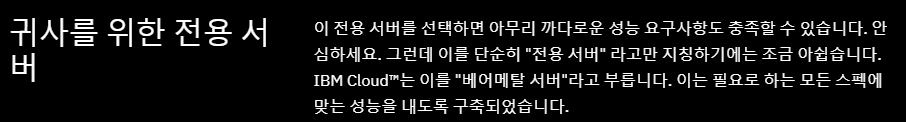 * IBM Cloud Essentials 코스에서는 Dedicated Virtual Server라고 칭하여 제작했지만, 개인적으로는 Dedicated Virtual Server 보다는 Dedicated Host가 의미상 더 맞지 않을까 싶습니다.