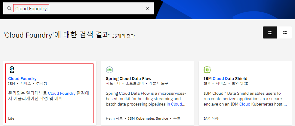 - Cloud Foundry를 검색 후 클릭 합니다.