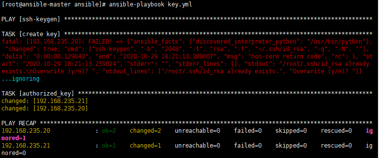 아래 코드와 같은 key.yml 이라는 야믈 파일을 하나 작성해준 후 ansible-playbook key.yml 명령을 이용해 실행 해줍니다.