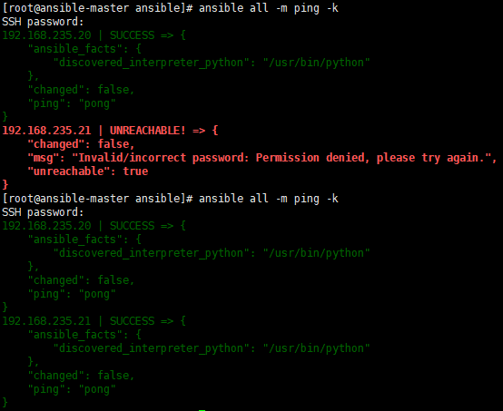 우선 앤서블로 연결을 시켜야하기 때문에 패스워드를 입력하여 연결하도록 하겠습니다. 저의 경우 20,21 서버가 서로 패스워드가 다르기 때문에 두번에 걸쳐 패스워드를 입력 하였습니다.
