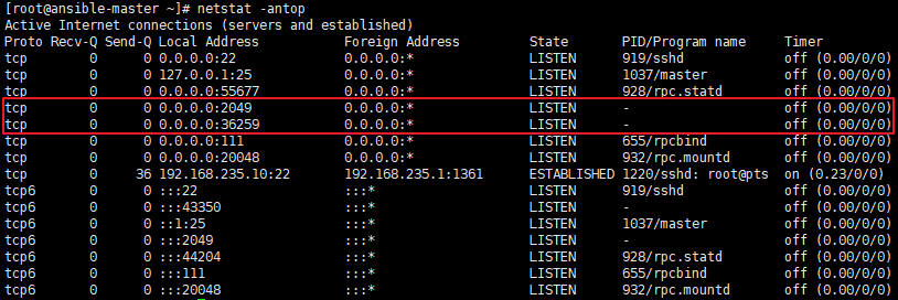 저는 ss 명령어를 통해 한번 더 2049 포트는 nfs인것이 확인 되었고 36259 포트는 ss 명령어로는 확인이 되지 않았습니다.
