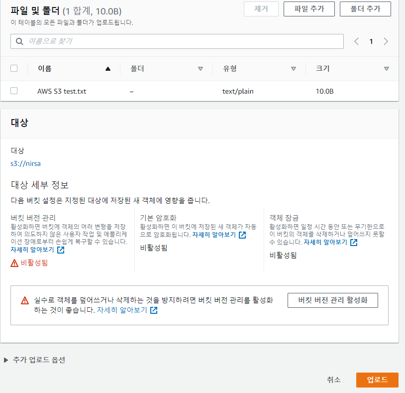 2) AWS S3 버킷에 파일 업로드 및 확인하기