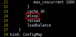 - kubectl edit cm coredns -n kube-system를 입력하여 24라인의 loop 부분을 주석 처리
