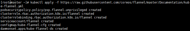 kubectl apply -f https://raw.githubusercontent.com/coreos/flannel/master/Documentation/kube-flannel.yml