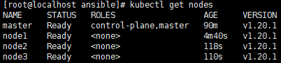 kubectl get nodes 명령을 사용하면 아래와 같이 master, node1, node2, node3이 모두 연동된것을 확인할 수 있습니다.