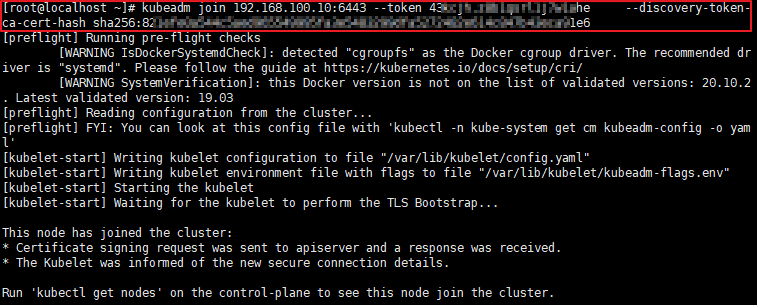 초기화 작업이 성공적으로 종료되면 아래와 같이 token 볼 수 있는데, 이 token으로 worker node와 클러스터 연동을 해야하기 때문에 별도로 저장하여 보관해주시길 바랍니다.