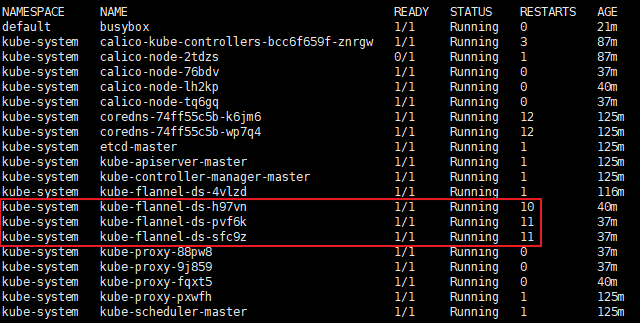 아래와 같이 kube-flannel이 CrashLoopBackOff가 발생하였습니다.