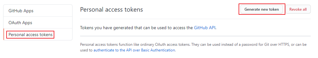 좌측 메뉴의 Developer settings → Personal access tokens → 우측 상단 Generate new token 클릭
