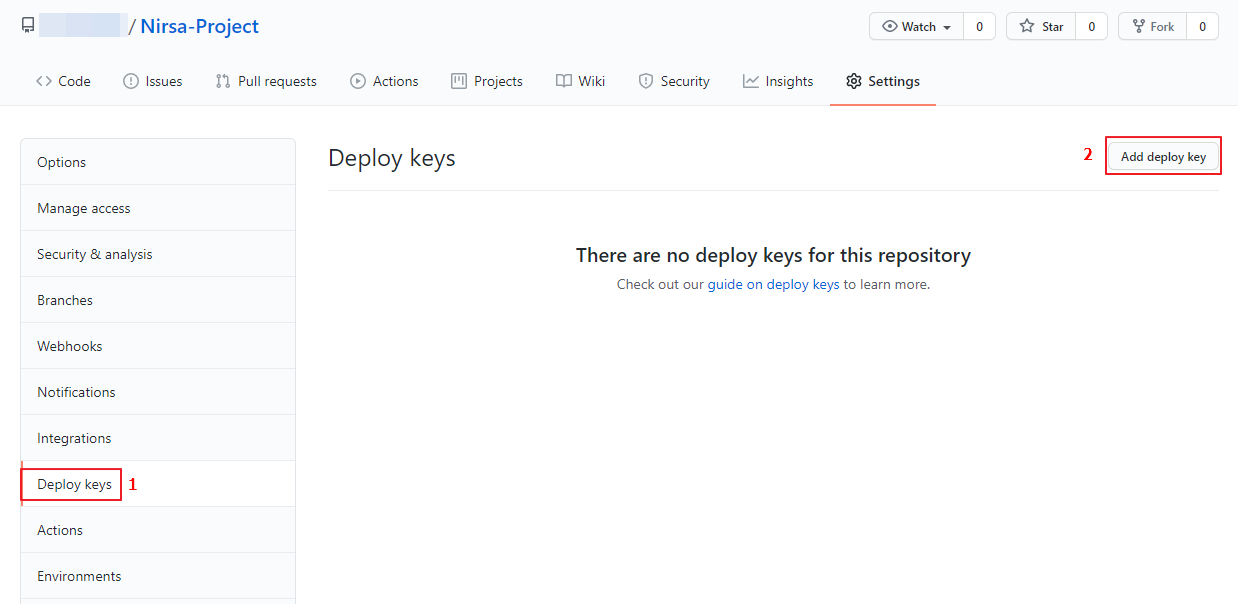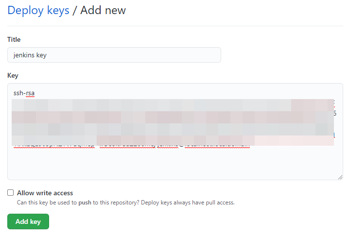 github 프로젝트로 이동하여 좌측의 Deploy keys → Add deploy key를 클릭 해주신 후 복사했던 키를 입력하고 저장 합니다.