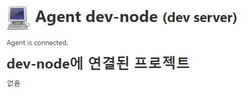 젠킨스 agent 노드를 추가 후 보면 아래와 같이 연결된 프로젝트가 없다는것을 확인할 수 있습니다.