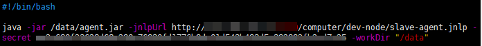 저의 경우 /data/jenkins_start.sh 파일을 만들었습니다. 아래와 같이 시작 스크립트를 만들 경로를 임의로 정하시고 에이전트 실행 명령어를 스크립트 내용 안에 적어 주세요.