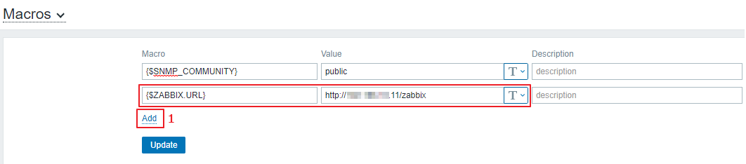 {$ZABBIX.URL} 을 삭제하고 직접 자신의 자빅스 URL을 입력 하거나 아래 과정을 따라가서 전역 변수를 설정 해주면 에러를 해결할 수 있습니다.
