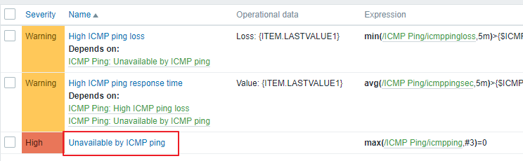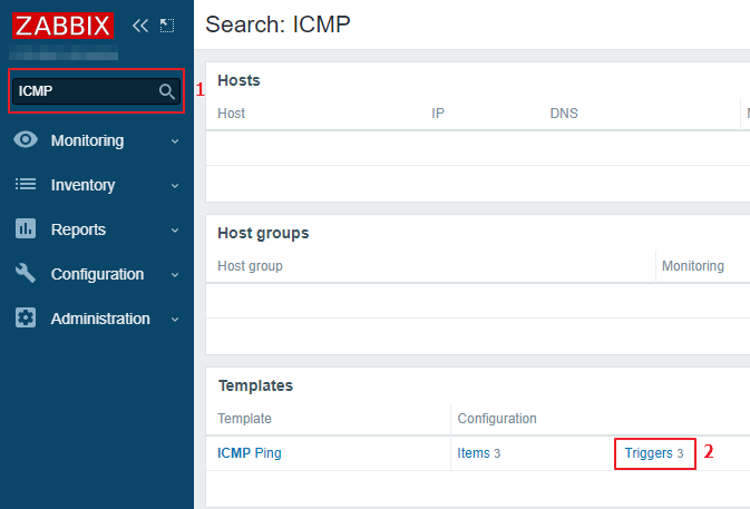 ICMP를 검색하고 Triggers를 눌러 줍니다.