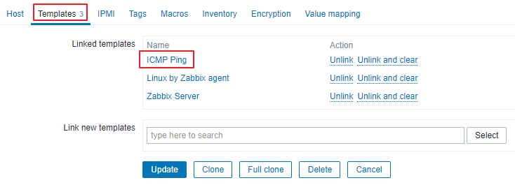 ICMP Ping 템플릿(자빅스에서 기본 제공)을 추가 해주세요.