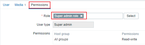 Permissions 에서 Suer admin role을 선택하고 저장 해주세요.