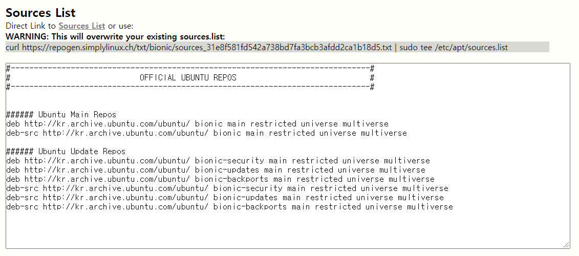 - 복사한 내용을 /etc/apt/sources.list에 붙여넣기