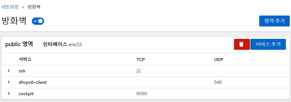 방화벽에서 "규칙 및 영역편집 (참고 2-2)"을 누르면 firewall 기반으로 관리할 수 있는 페이지가 있습니다. 여기서 방화벽을 추가할 경우 바로 로드되어 적용 됩니다. firewall에 익숙하지 않으신분은 유용하게 사용할 수 있을 것 같네요.