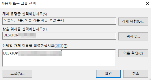 10. 이전 권한 설정과 똑같이 사용할 윈도우 계정을 추가 해주세요.