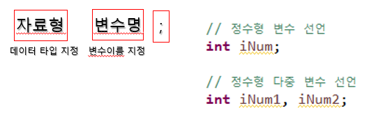 하지만 만약, 변수의 선언과 초기화를 동시에 하고 싶다면 데이터 타입을 포함하여 작성하시면 됩니다.