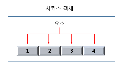시퀀스 자료형으로 만든 객체를 시퀀스 객체라고 하며, 각각의 값이 요소 입니다.