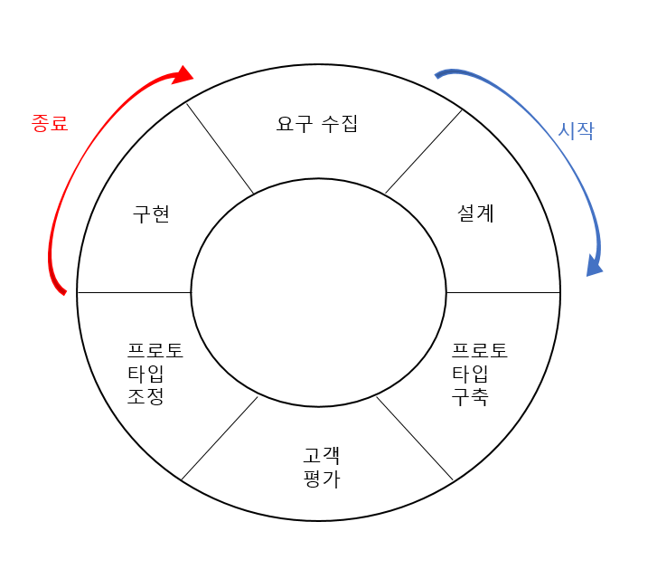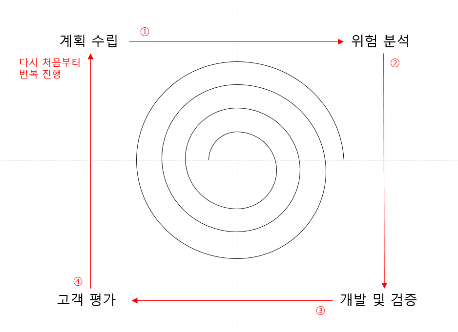 - 나선처럼 여러 번의 개발 과정을 거쳐 점진적으로 최종 소프트웨어를 개발
