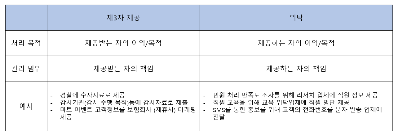 (가) 개인정보의 제3자 제공과 위탁의 차이점