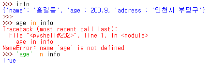 - 딕셔너리 = dict(키1=값1, 키2=값2 …)