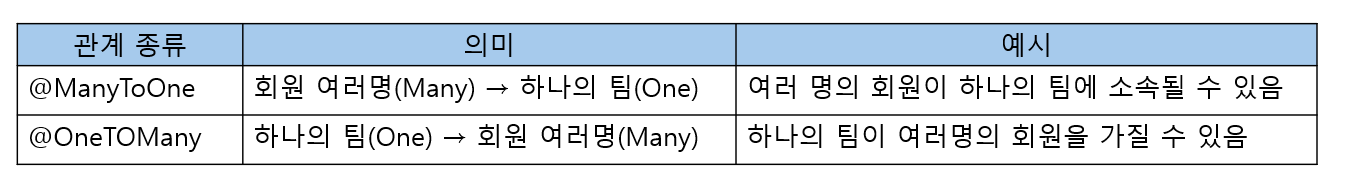 // 3. 팀에 회원 추가 (단방향 관계이므로 Member에 team 설정은 없음)