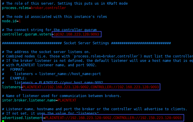 이후 KRaft 메타데이터를 저장하기 위한 디렉토리를 생성하고 클러스터 설정을 위해 config/kraft/server.properties를 vim으로 열어주세요.